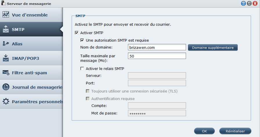 – La gestion du mail pour plusieurs domaines, même si la solution choisie par Synology ne me plait que moyennement. A priori, un compte mail reste rattaché à un compte utilisateur du synology, il ne semble pas possible de les gérer indépendant. Pour mon utilisation, cela devrait être suffisant.