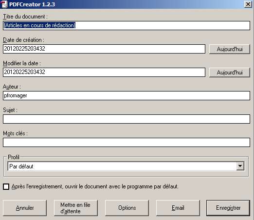 Suite au post sur la conversion d’un fichier PDF en ligne https://archive.brizawen.com/?p=1936, vous avez été quelques-uns à me demander quel logiciel utiliser pour créer des PDF. Personnellement, sous Windows je n’en recommande qu’un seul : PDFCREATOR.