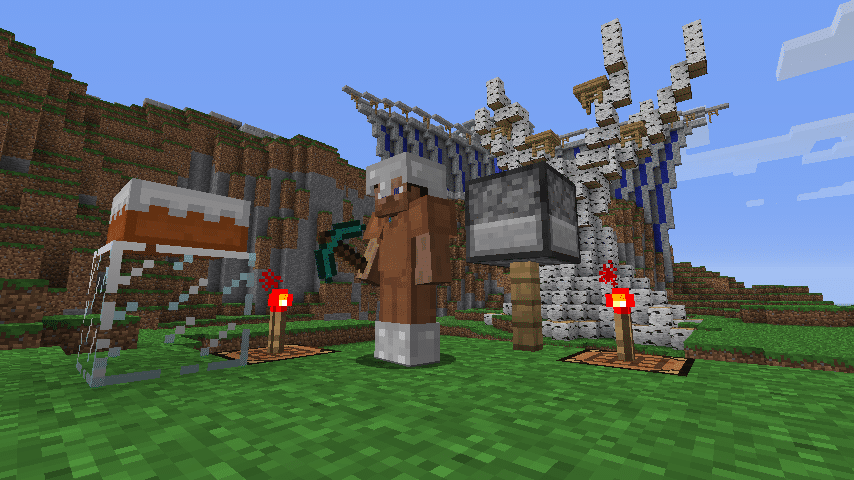 • Build Turret – Left-click the ground with the dispenser in your hand to build a turret. Once your turret is built, you must put arrows inside for it to shoot. If you hold your wooden sword and swing it, your turret will shoot an arrow in the exact direction you are facing. If you are not holding your wooden sword, your turret will auto-aim and fire at the closest enemy.