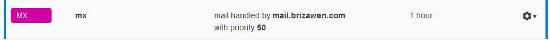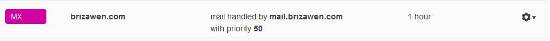 The « name » of the MX records should be the same as the root domain (brizawen.com) not « Mx » or any expression.