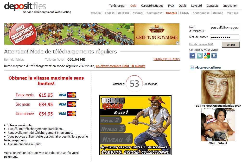 Bonjour ,attention arnaque à la carte bleu abonnement retiré en double le site est :www.depositfileaz. baku